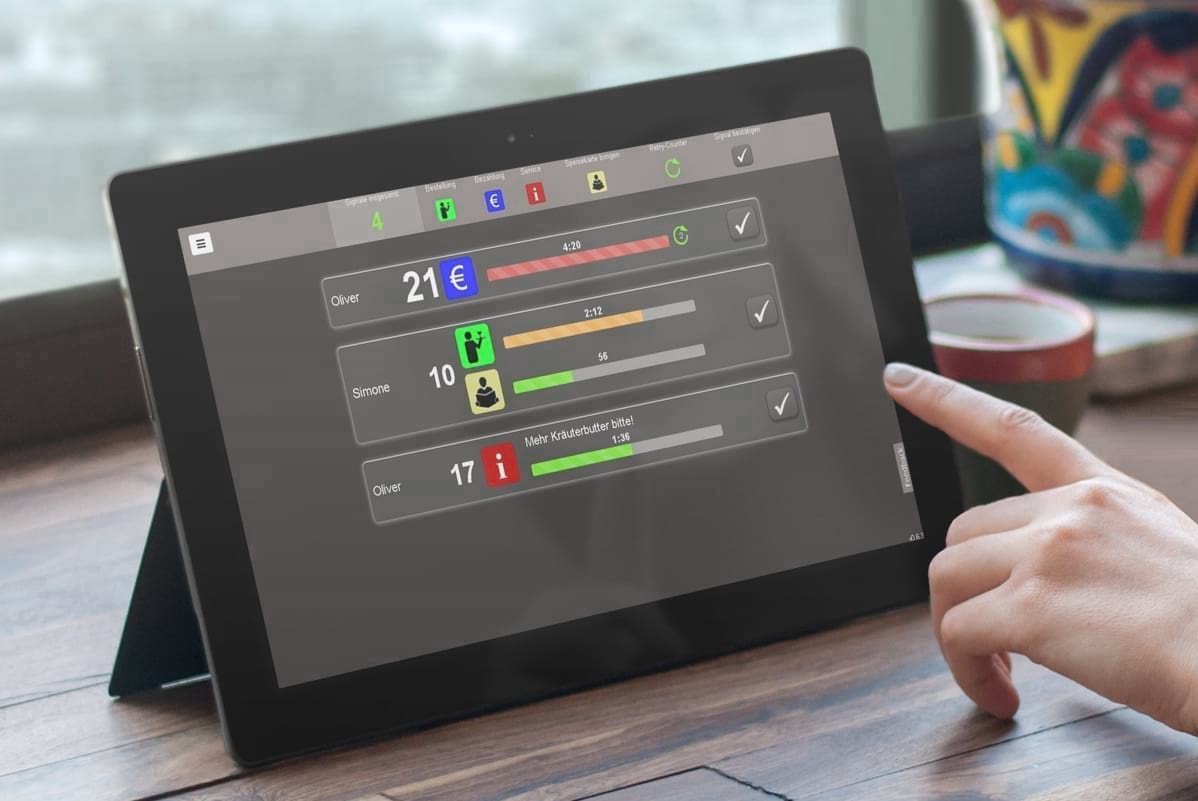 Place the numbered table cubes (service cubes) on the corresponding tables